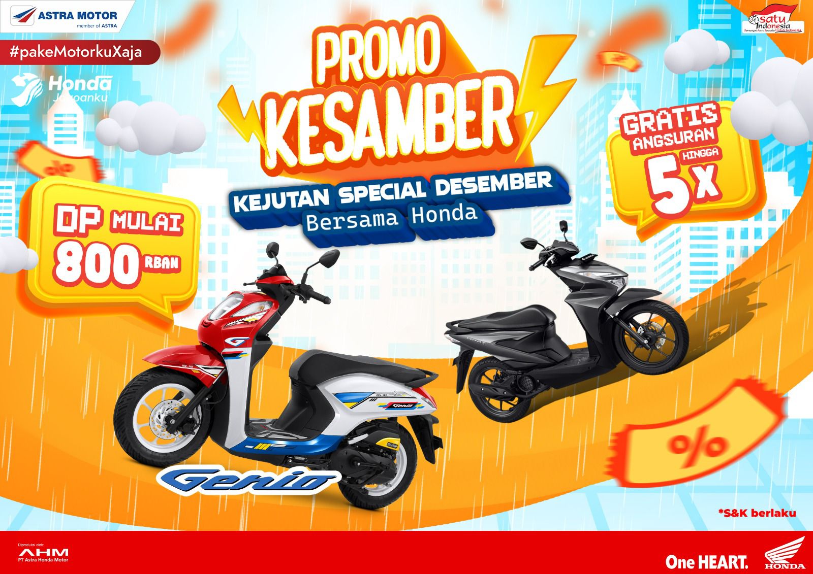 Melalui program “Kesamber” ini, konsumen dapat membawa pulang Honda Genio dan Honda BeAT hanya dengan DP mulai Rp 800 ribu, ditambah gratis angsuran hingga 5 kali. Penawaran ini dihadirkan untuk menjawab kebutuhan masyarakat yang membutuhkan motor irit, lincah, dan praktis untuk mendukung aktivitas harian di akhir tahun yang semakin padat.