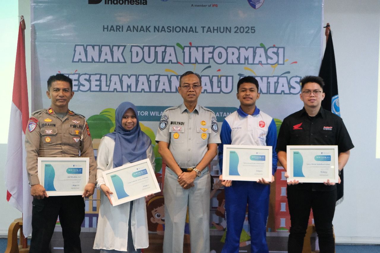 ELINE.NEWS,Makassar – Dalam rangka memperingati Hari Anak Nasional 2025, PT Jasa Raharja Sulawesi Selatan memberikan penghargaan khusus kepada Asmo Sulsel atas kontribusi aktif dan berkelanjutan dalam mengedukasi pelajar tentang keselamatan berlalu lintas. Penyerahan penghargaan dilakukan langsung oleh Mulyadi, Kepala Wilayah Jasa Raharja Sulsel, dalam kegiatan yang berlangsung di kantor Astra Motor Sulsel, Jalan Sultan Alauddin No. 57, Makassar.