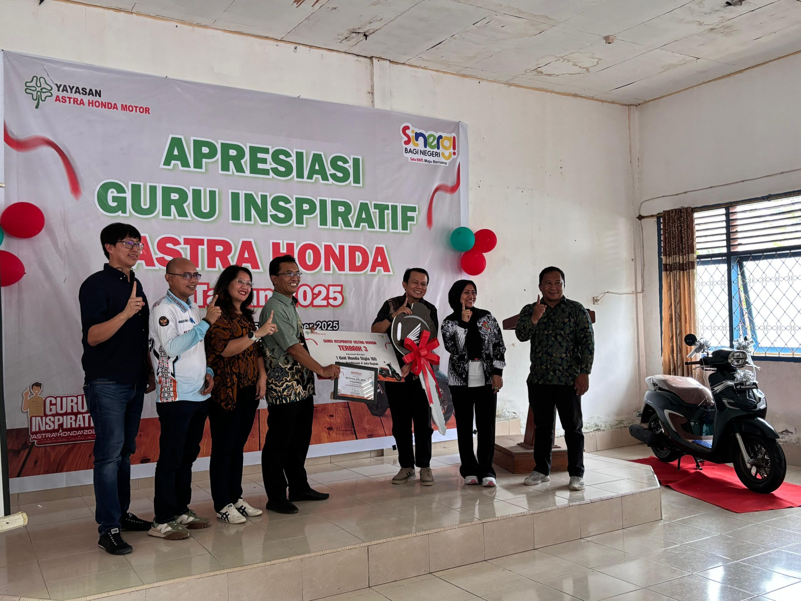 ELINE.NEWS,Konawe — Astra Motor Sulawesi Selatan (Asmo Sulsel) bersama Yayasan Astra Honda Motor (YAHM) memberikan apresiasi istimewa kepada Edi Arham, S.Pd., M.Pd, guru SD Negeri Lalowata, Kabupaten Konawe, Sulawesi Tenggara, yang berhasil meraih Juara Terbaik Ke-3 Nasional dalam Program Guru Inspiratif 2025, yang diselenggarakan oleh Yayasan Astra Honda Motor. Bentuk penghargaan ini diberikan melalui sebuah seremoni di Dinas Pendidikan dan Kebudayaan Kabupaten Konawe, pada Jumat, 5 Desember 2025.