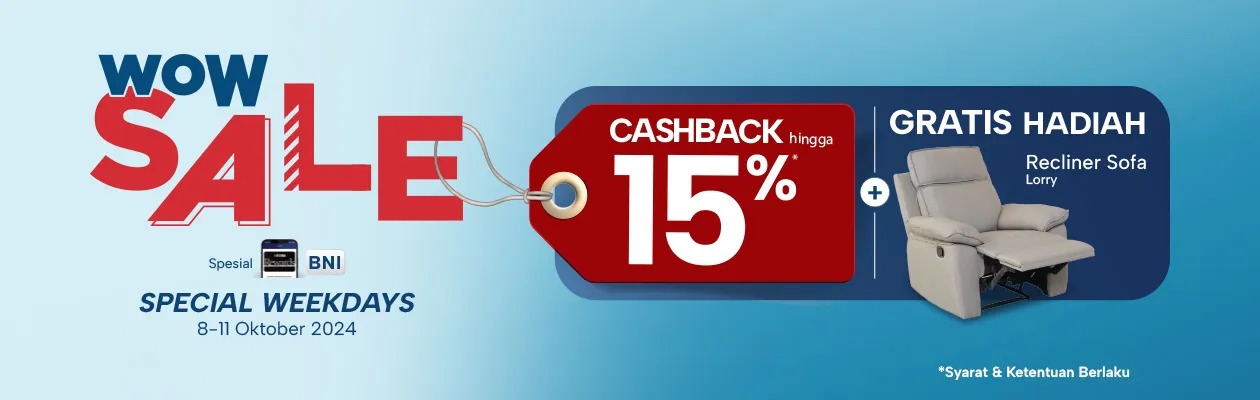 Tak tanggung-tanggung, selain memberikan penawaran Beli Sofa Gratis Sofa Informa hadir memberikan penawaran cashback hingga 15%