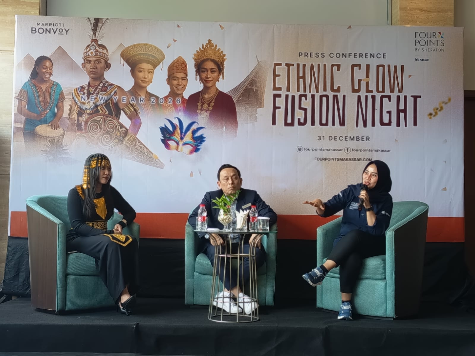 General Manager Four Points by Sheraton Makassar, Agus Sunaryo, menjelaskan bahwa konsep Ethnic Glow Fusion Night dihadirkan sebagai jawaban atas kebutuhan masyarakat Makassar yang ingin menikmati perayaan tahun baru yang berbeda, berkelas, sekaligus ramah keluarga.