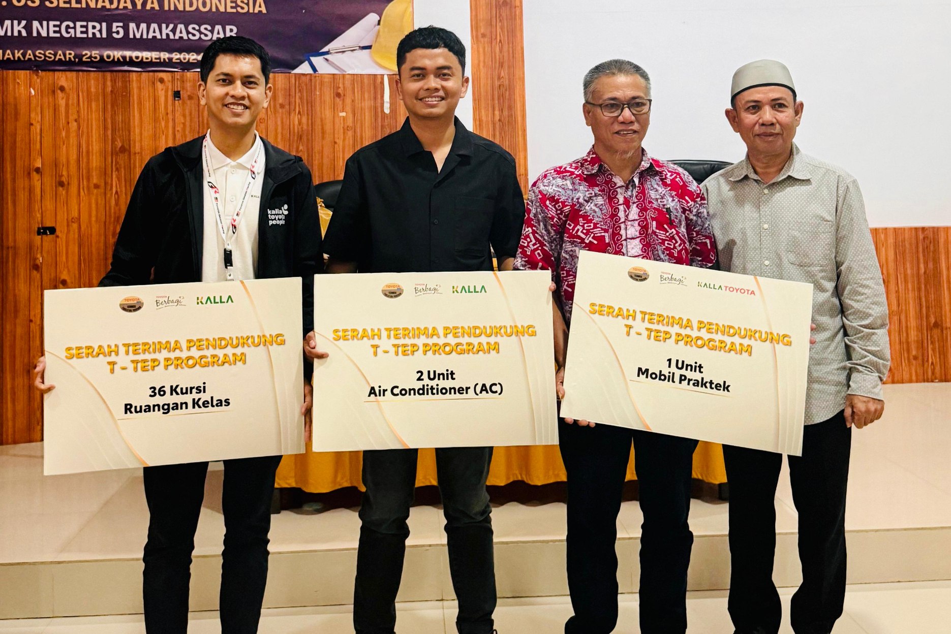 Dalam kegiatan yang berlangsung di lingkungan SMK Negeri 5 Makassar, Kalla Toyota dan Yayasan Kalla secara resmi menyerahkan bantuan fasilitas pendidikan berupa 1 unit mobil praktik, 2 unit Air Conditioner (AC), dan 36 unit kursi ruang kelas. Bantuan ini bertujuan untuk meningkatkan kenyamanan proses belajar serta memperkuat kompetensi praktik siswa agar selaras dengan standar industri otomotif.