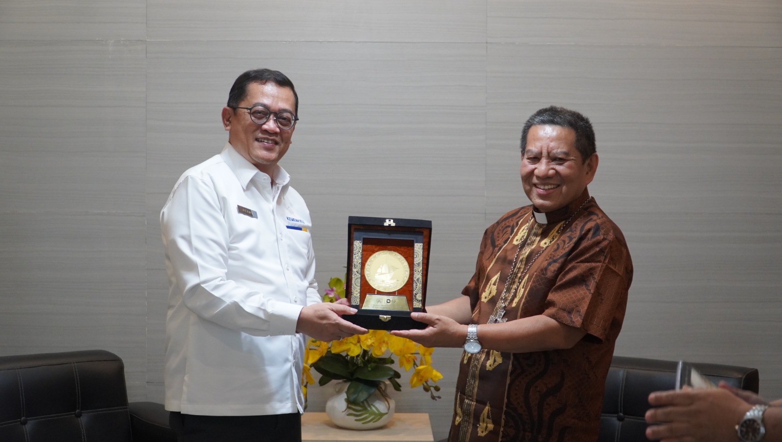 ELINE.NEWS,Makassar — Kepala Kantor Wilayah Direktorat Jenderal Pajak Sulawesi Selatan, Barat, dan Tenggara (Kanwil DJP Sulselbartra) YFR Hermiyana beserta jajaran pejabat lainnya melakukan audiensi dengan Uskup Agung Makassar Mgr. Fransiskus Nipa dalam rangka memperkuat komunikasi, membangun kolaborasi, serta memperluas jangkauan edukasi perpajakan kepada masyarakat di Keuskupan Aguung Makassar, Jl. M.H. Thamrin No. 5-7 Kelurahan Baru, Kecamatan Ujung Pandang, Kota Makassar.