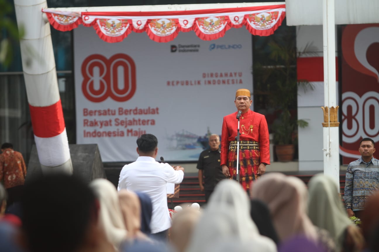 Dalam amanatnya, Arif Suhartono menekankan bahwa semangat kemerdekaan harus dimaknai dengan kontribusi nyata di sektor transportasi laut dan logistik.