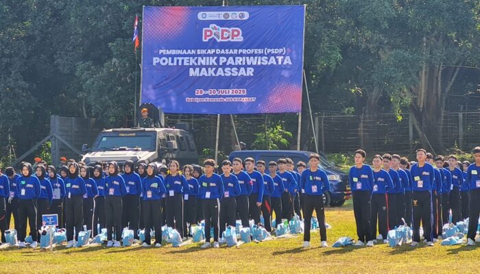 ELINE.NEWS,Makassar — Politeknik Pariwisata Makassar secara resmi membuka kegiatan Pembinaan Sikap Dasar Profesi (PSDP) bagi mahasiswa baru Tahun Akademik 2025/2026 pada Senin, 28 Juli 2025. Kegiatan ini dilaksanakan di Markas Yonko 466 Komando Pasukan Gerak Cepat (Kopasgat) TNI Angkatan Udara, Mandai, Kab. Maros dan dihadiri oleh Komandan Batalyon, pimpinan dan jajaran struktural Poltekpar Makassar, para dosen dan tenaga kependidikan, panitia pelaksana, panitia Senat Mahasiswa, serta seluruh mahasiswa baru yang menjadi peserta kegiatan.