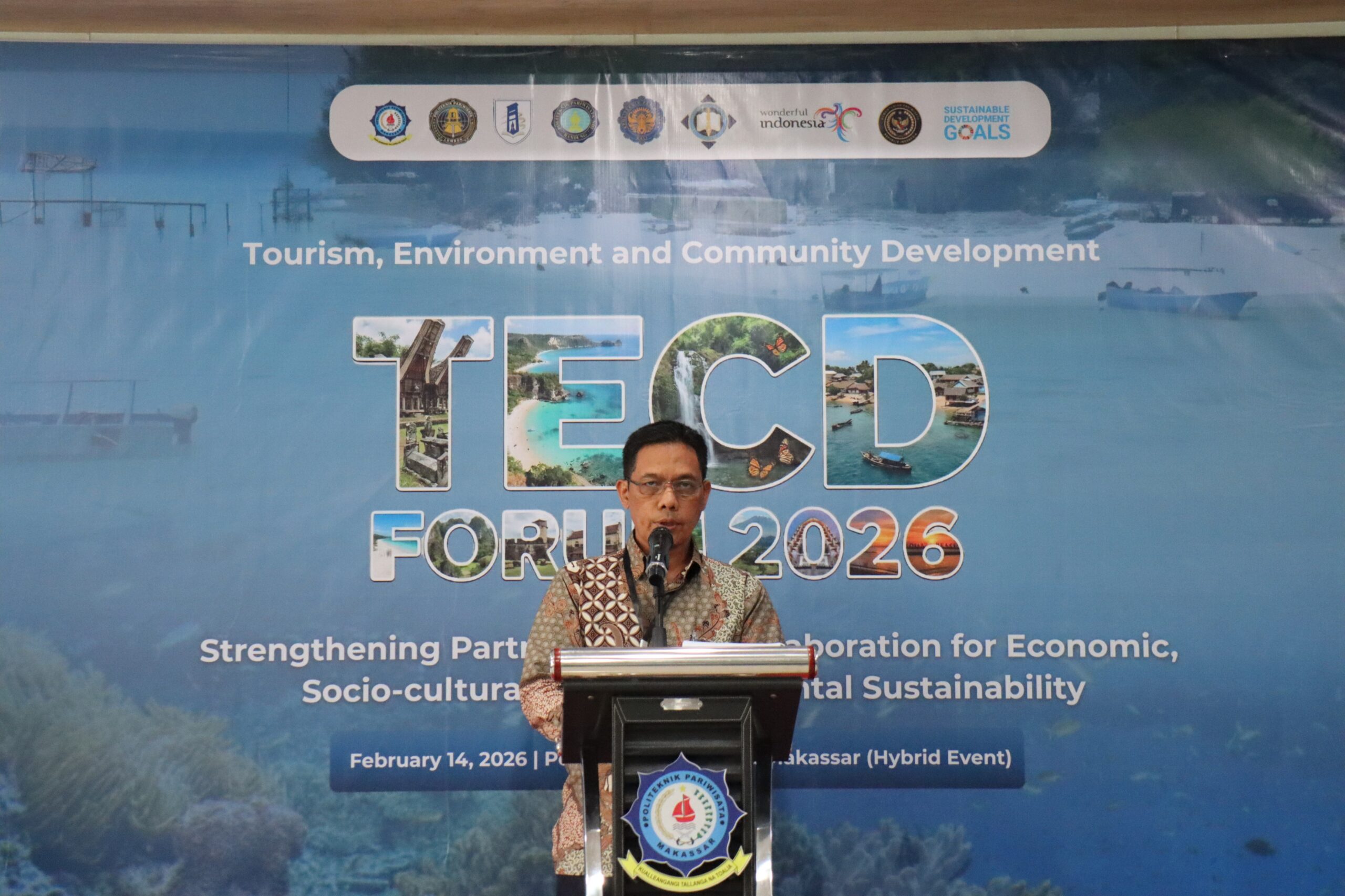 ELINE.NEWS,MAKASSAR — Politeknik Pariwisata Makassar kembali menegaskan komitmennya dalam penguatan pengembangan keilmuan dan praktik pariwisata berkelanjutan melalui penyelenggaraan Tourism, Environment, and Community Development (TECD) Forum 2026. Kegiatan ini dilaksanakan secara luring di D’Anjong Hotel, Makassar, serta disiarkan secara daring melalui platform Zoom, dengan melibatkan akademisi, peneliti, praktisi pariwisata, mahasiswa, serta mitra institusi dari dalam dan luar negeri.