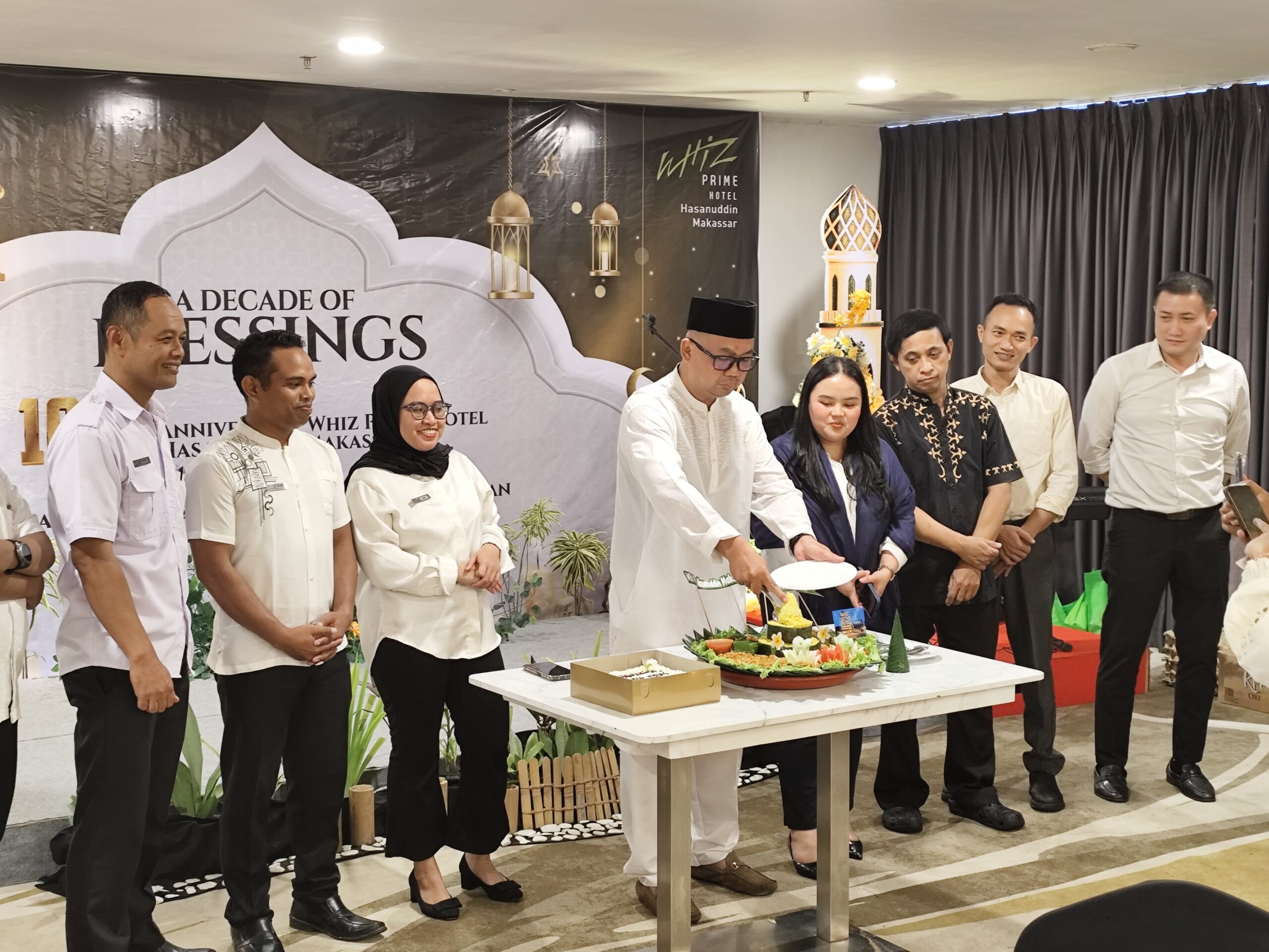 ELINE.NEWS,MAKASSAR – Memasuki usia satu dekade, Whiz Prime Hotel Hasanuddin Makassar menegaskan komitmennya untuk terus tumbuh dan memberikan kontribusi positif bagi masyarakat. Momentum istimewa ini dirayakan dengan mengusung tema “A Decade of Blessings”, sebuah refleksi rasa syukur atas perjalanan sepuluh tahun dalam industri perhotelan di Kota Daeng.