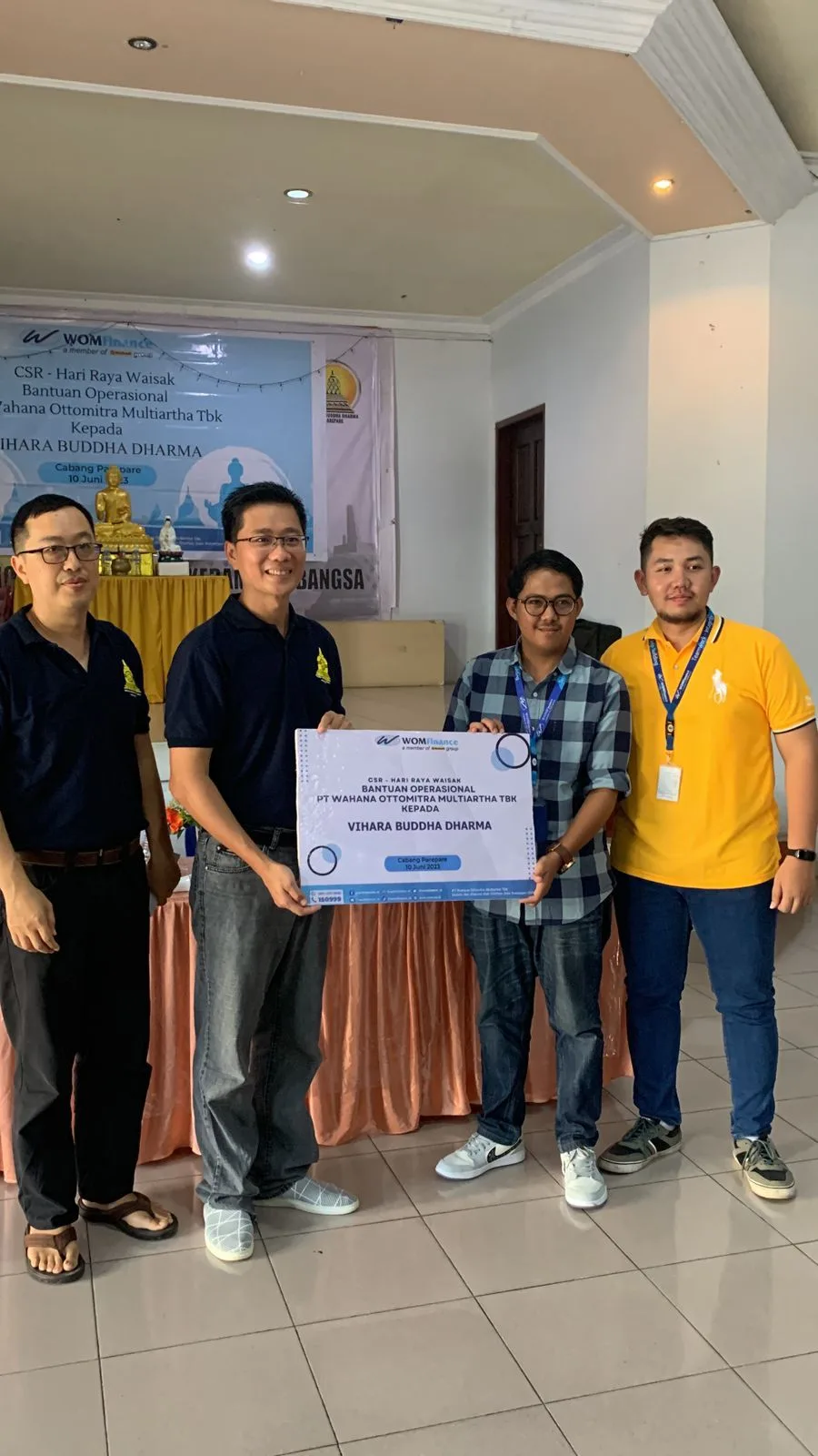 Pada kegiatan CSR Hari Raya Waisak tahun 2[023 ini, WOM Finance Kantor Cabang Parepare memberikan bantuan operasional sesuai dengan kebutuhan Vihara tersebut. Penyerahan bantuan secara simbolis ini dilakukan oleh Oktaweno Orlando, Branch Head WOM Finance Kantor Cabang Parepare dan diterima langsung oleh Peter Hejaya, selaku perwakilan dari Vihara Budha Dharma.