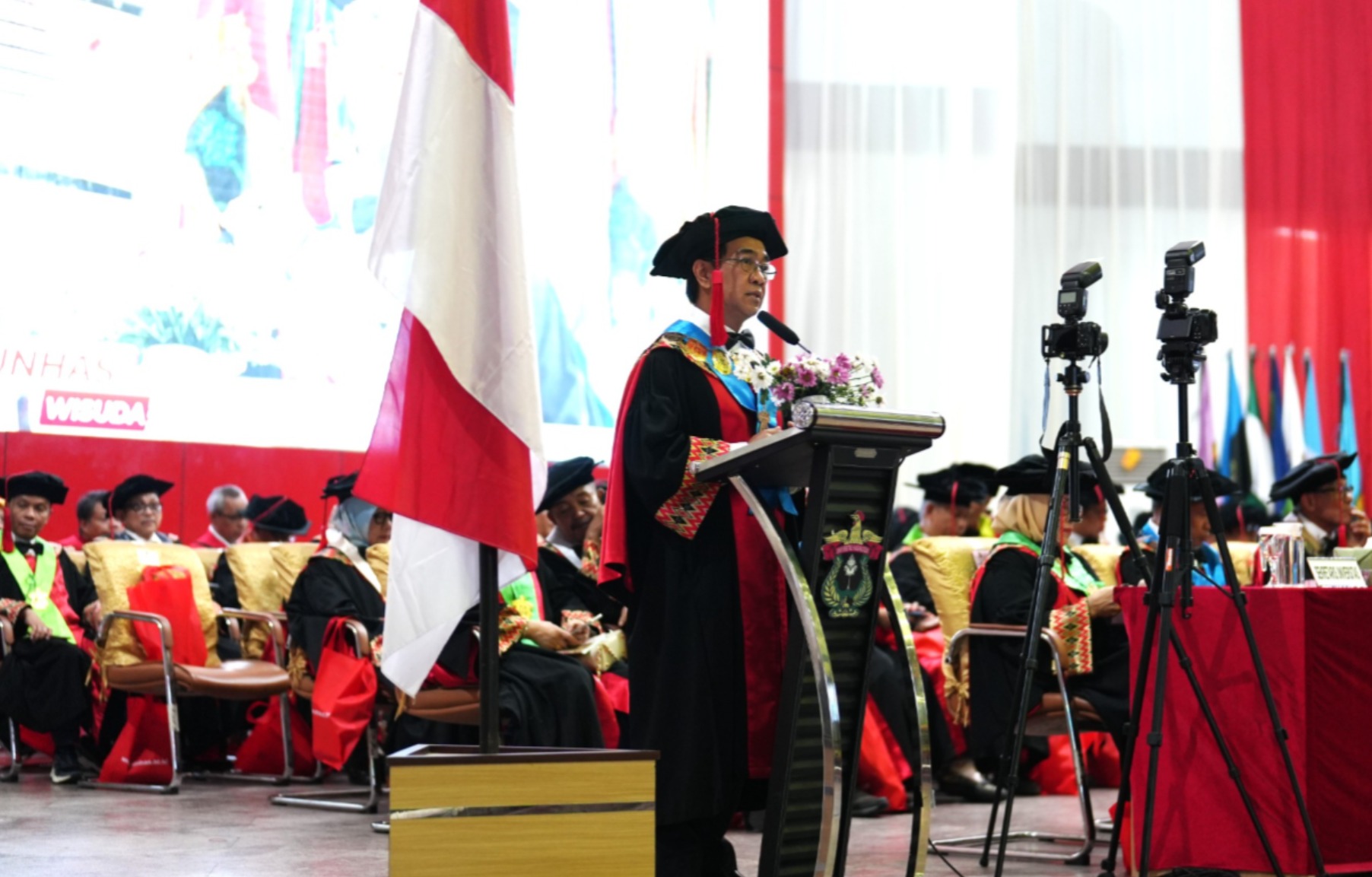 Dalam sambutannya, Rektor Unhas, Prof. Jamaluddin Jompa (Prof. JJ) mengapresiasi perjuangan seluruh wisudawan yang berhasil menyelesaikan studi di tengah tantangan. Ia menekankan bahwa keberhasilan itu mencerminkan ketangguhan dan kualitas lulusan Unhas di tengah ketatnya persaingan masuk perguruan tinggi.