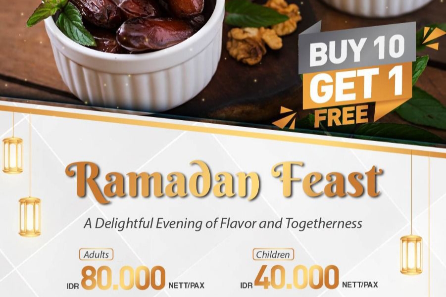Paket berbuka puasa ditawarkan dengan harga IDR 80.000 nett per orang untuk dewasa dan IDR 40.000 nett per orang untuk anak-anak, berlaku mulai pukul 18.00 hingga 22.00 WITA. Untuk pemesanan grup, hotel juga menghadirkan promo Buy 10 Get 1 Free, menjadikan Ramadan Feast cocok untuk agenda buka puasa bersama komunitas, instansi, maupun perusahaan.